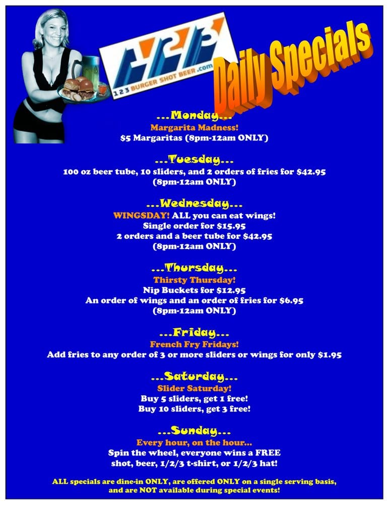123 Burger Shot Beer is a sports bar in New York City, offering a variety of American dishes like sliders, wings, and waffles. This casual spot is great for groups and late-night outings, with happy hour specials and a full bar. The menu features affordable options like $1 sliders, $2 shots, and $3 beers. Customers rave about the flavorful chicken wings and the diverse shot selection. The atmosphere is lively, with TVs for watching games and even a pool table for entertainment. Despite the low prices, the quality of food and service is consistently good. Overall, 123 Burger Shot Beer is a budget-friendly spot for enjoying delicious bar food and drinks with friends.